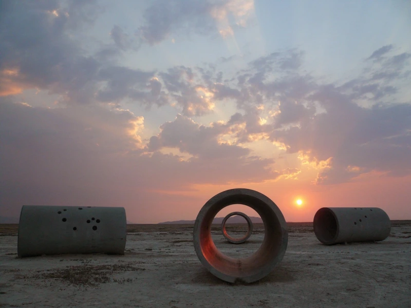 예를 들어 낸시 홀트(1938~2014)의 '태양 터널(Sun Tunnels)'은 무게 22톤, 길이 18피트, 지름 9피트 크기의 콘크리트 원통 4개로 구성되어 있다. 유타주의 그레이트 베이슨 사막에 위치하고 1973년에서 1976년 사이에 만들어진 이 터널은 여름과 겨울 동지 동안 수평선 위의 태양을 가리기 위해 옆으로 X자 모양으로 배치되어 있다. 각 터널을 나선형으로 가로지르며 원통 측면에 뚫린 작은 구멍은 해나 달이 비칠 때마다 내부에 드라코, 페르세우스, 콜롬바, 염소자리 등 별자리를 투영한다.